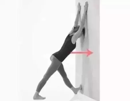 一组动作:上半身向墙面的方向压,左腿同时弯曲。(可以更改手臂间的角度)频率:每个动作保持30s,重复3次。