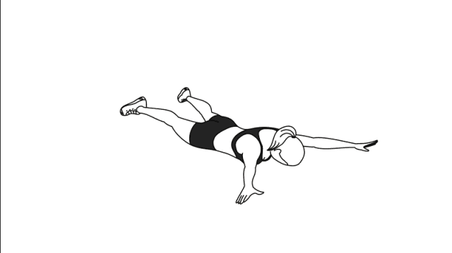 注意:整套动作只靠腹部支撑,腿和手臂都悬空,手臂要伸展开。