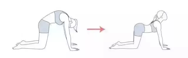 一组动作:胸椎下沉,凹出弧度,像骆驼一样。然后再弓起,动作反复。