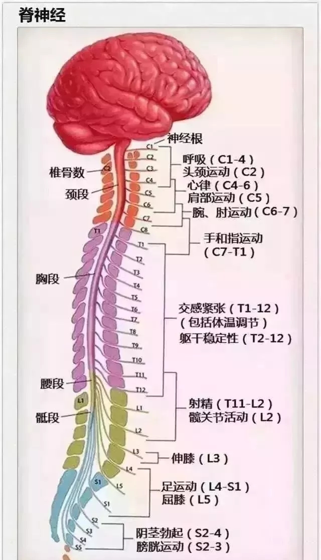 随损害节段不同,导致相应的内脏功能障碍。例如:T1~5椎间错位可发生频发性早搏(室性、房性、多源性),房室传导阻滞,冠状动脉痉挛(我研究所经四组不同设计的动物实验结果证明,T1~5胸椎人为错位能使心电图正常的实验动物,发生、发展为冠心病动物模型,最终可发展到心肌梗塞而猝死,因此,脊椎病因亦是冠心病的病因之一,是已有冠心病者心绞痛的诱因之一。