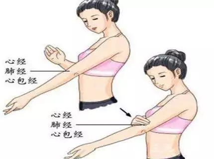 肘窝部位,刚好是心经、心包经、肺经三条阴经通过的地方,还藏着两个穴位,肺经的尺泽穴和心包经的曲泽穴。