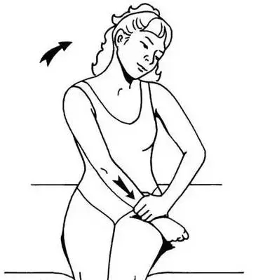 在腕上部抓住手臂向下和对侧牵拉。将头部向同侧轻轻的倾斜,维持3秒钟,重复10次。