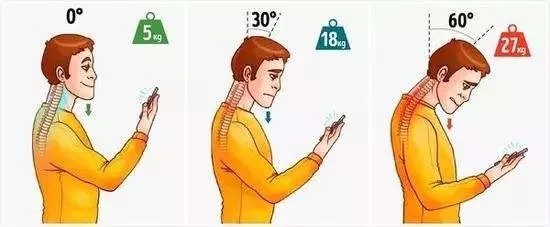 当你低头60°时,颈椎会承受的巨大压力,这个压力相当于脖子上坐了个七八岁的娃,而一直把娃儿放在你肩膀上坐马马肩每天坐几个小时,你想你的颈椎受的了吗?
