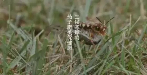 三候:寒蝉鸣寒蝉鸣:秋天感阴而鸣的寒蝉也开始鸣叫。这时候的蝉,食物充足,温度适宜,在微风吹动的树枝上得意地鸣叫着,好像告诉人们炎热的夏天过去了。