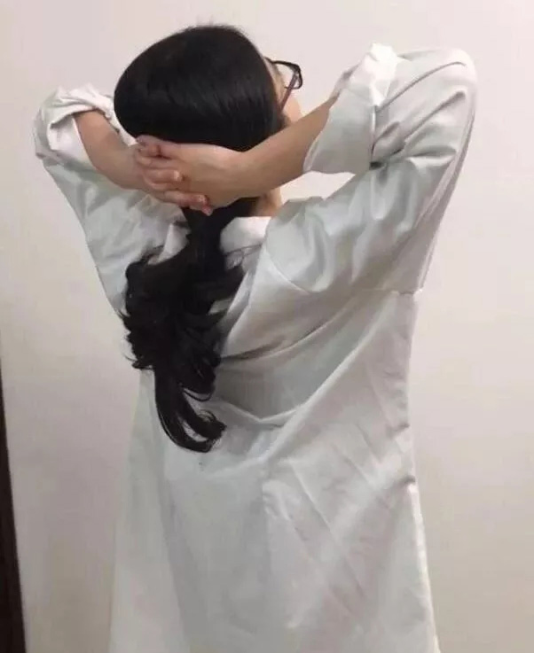 3.向后背手,手尖尽量去够脊柱正中位置。如果可以轻松完成,说明肩关节旋后的功能没问题。
