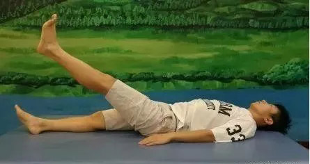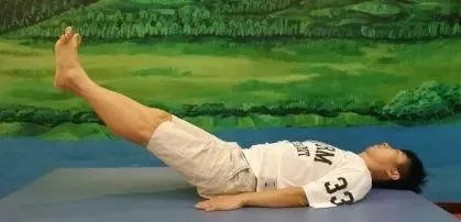 第五式:仰卧位,单侧下肢直腿抬高至30°~45°之间,稍作停顿,回到起始体位,换另一侧下肢抬起。重复5~10次。