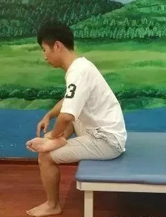 第十三式:坐于床沿或凳子上,将一侧脚放于对侧膝盖上,同侧前臂压在同侧膝盖上方,对侧手握住上方脚踝,躯干挺直前屈,臀部肌群有明显牵拉感停止,保持6-15秒。左右互换,重复5-10次。