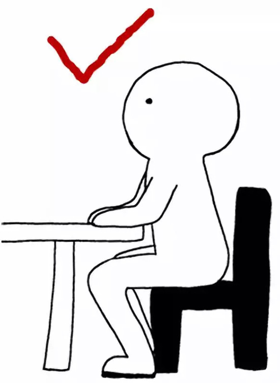 坐着写字、用电脑的正确姿势应该是这样子的: