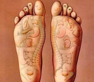 摩脚:洗脚后,双手搓热,轻揉搓相关部位或穴位,可全脚按摩,也可局部按摩,多按摩涌泉穴(足心)或太冲穴(一、二足趾关节后)或太溪穴(内踝高点与跟腱之间凹陷处)。对头晕、失眠、厌食、面色晦暗、疲劳、高血压、便秘等有防治作用。