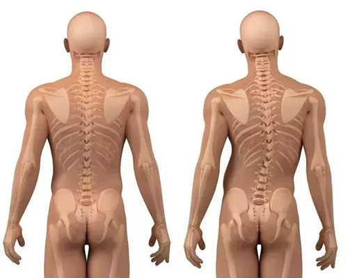 脊椎侧弯是一种常见的骨骼问题,在站姿下,不管从正面或背面看,正常的脊椎排列应该是身体左右两边对称,并且正常的脊椎排列从上到下是呈一直线的。