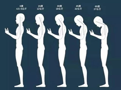 为什么我们的颈椎这么快就撑不住了?因为,抬头看蓝天的时间少了,埋首玩手机的时间长了。“手机脖”已成为新一代的全球疾病。一个人的头部重约5公斤,当前倾看手机等电子设备时,通常呈60°,由于重力和杠杆作用,颈部肌肉就要承受27公斤以上的重量。