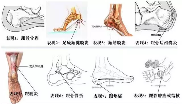 ④足跟部的疼痛,休息后减轻,活动后加重。