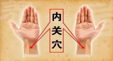 内关穴也很好找,在手臂内侧,腕横纹上两寸,取穴时手握虚拳向上平放,另一手食指、中指、无名指三指以腕横纹为准并齐,食指点按的地方就是内关穴。这个穴位在养生上的好处是:随时随地都可以点揉,以略感酸痛为宜。