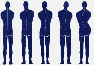 找一面垂直的墙面;头后部、肩部、臀部、脚后跟,这四点紧紧贴合在这面墙;立拳,放到腰部和墙面之间,如果刚才四点任然紧贴在这面墙上,说明你的腰椎曲度没有问题(手要握紧,立拳,不能平放进去)。如果不能放进去,说明你的腰椎曲度变形了。