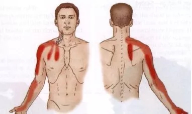 例如斜角肌的下中部和下部的触发点多引起胸部的关联痛,斜角肌的上中部和上部的触发点却常常引起上臂和肩膀的关联痛。临床上,实际中、后斜角肌的中部以及中下部触发点往往多引起上臂的前部、中部、后部以及肩胛骨的疼痛和胸闷。