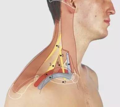 5,斜角肌引起的疼痛沿着上臂的前后方向下传送,常被当成肌肉扭伤或者让神经科医生认为是变性的颈椎间盘引起的神经根压迫(根性刺激)。