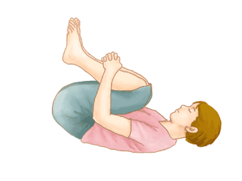 2.躺在地上,两脚屈膝,两手环抱住小腿,抬头收腹拱背,身体往后从尾椎、腰椎、胸椎一节一节碰触地面,如此前后滚过来滚过去。
