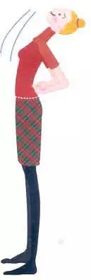 从侧面看:从肩膀至脊柱中部向后弯。腰部向前弯。