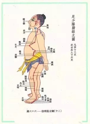 经络共有44个穴位,遍布较多的在面部和小腿足部,因胆经不通者会引起头痛、偏头痛、耳鸣、乳腺疾病、胆结石、静脉曲张等,循环在二十三点至一点,胆汁有多清,脑就有多清,此时入睡头脑清醒,面色红润,早上起床敲打胆经效果更加。