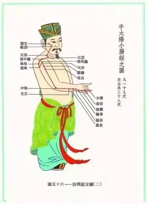 手太阳小肠经,小肠有一个主要的功能叫分清泌浊,就是把从胃消化来的食物中的营养东西吸收了,把糟粕的东西排出去。