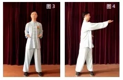 动作一:接上式。两手松开,掌心向上,向后收拢到腰间,目视前下方,(图 3)。