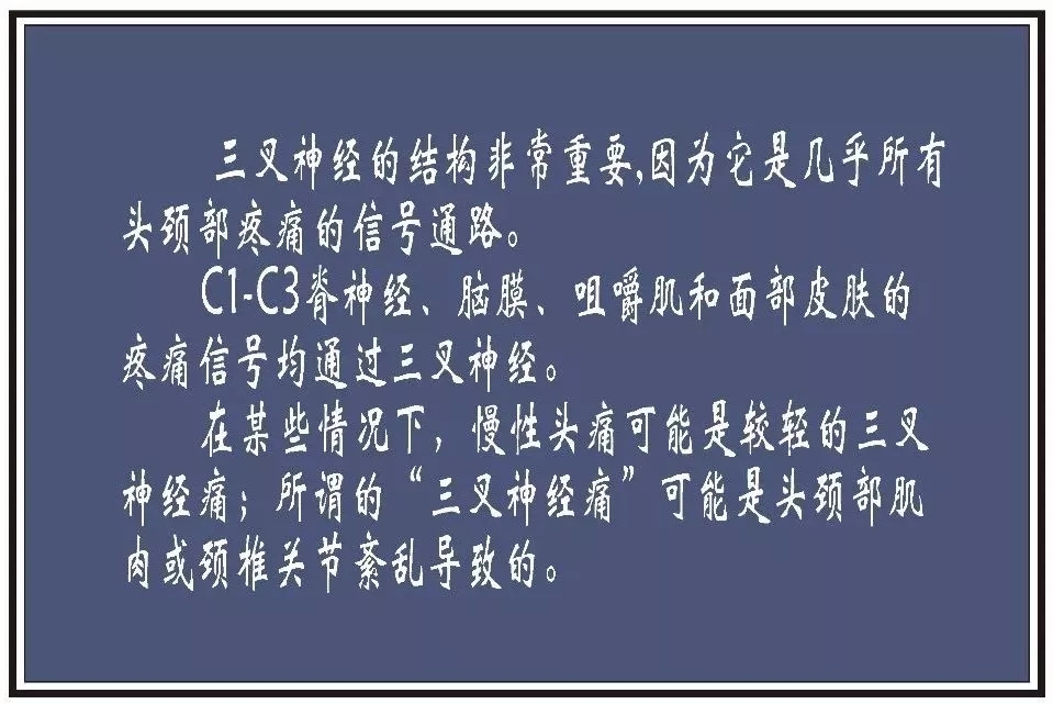 头痛共同解剖上述不同解剖组织损伤导致的疼痛信号均需要通过三叉神经传递给大脑。
