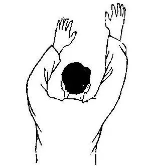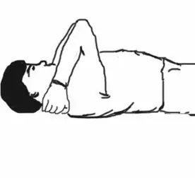4、头枕双手法站立或仰卧,手十指交叉,放在头后部(枕部),先使两肘尽量内收,然后再尽量外展。