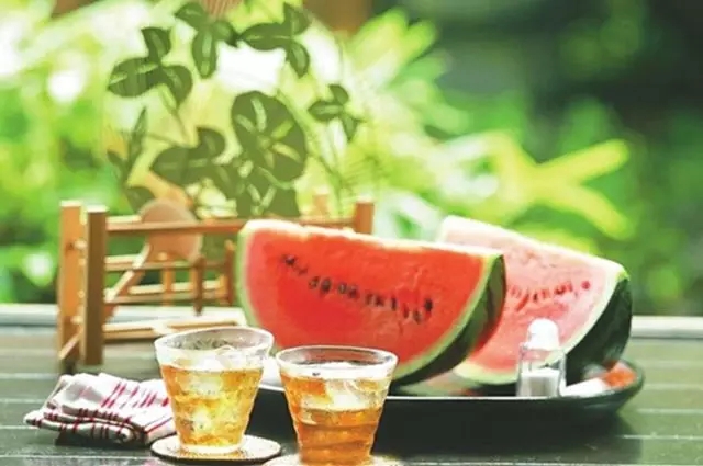 吃西瓜等冰镇水果是常见的消暑方法。西瓜有清热解暑、生津止渴、利尿除烦的功效。但西瓜不可多吃,尤其是从冰箱里拿出来的西瓜,湿气重,损伤脾阳。