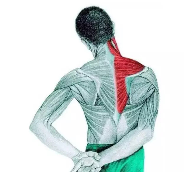 肌肉 :半棘肌、夹肌、棘肌、颈夹肌、竖脊肌、斜方肌 拉伸 :双手十指交扣放在后脑勺,脖子往前屈曲;手不用用力,让重力把头往下压即可。