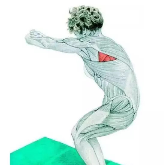 肌肉 :大圆肌、菱形肌、上斜方肌拉伸 :站直,双脚并拢;手十指交扣,向前伸直,掌心朝外;稍微弯曲膝盖,弓背。