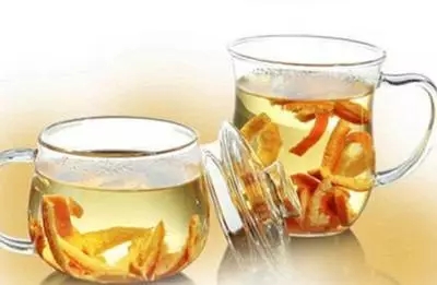 用鲜橘子皮泡开水,加适量白糖,为橘皮茶,饮后可理气消胀,生津润喉。
