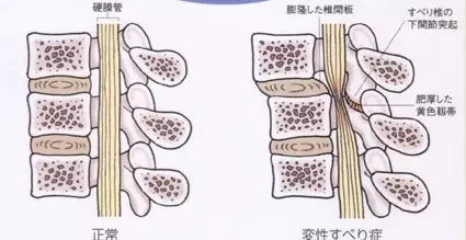 (4)椎体滑脱:当椎体发生错位滑脱时,因为上下椎管前后移位,使椎管进一步变窄。