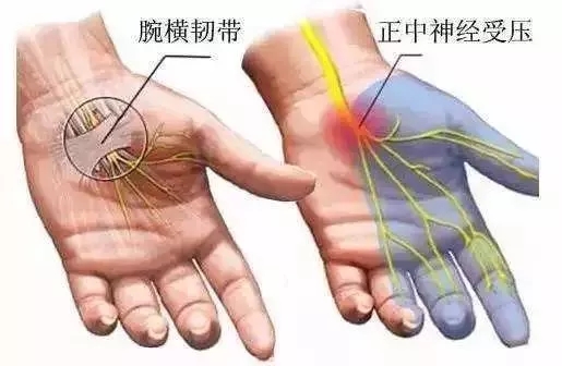 神经内有轴浆流动,当神经受到压迫时,轴浆流动受阻碍,亦会引起手麻。到手掌主要有桡神经,尺神经,正中神经,这些神经从颈椎管出发,穿过关节,韧带,骨纤维管到达手掌末梢,在任何一个部位,神经受到压迫,均会引起手麻。